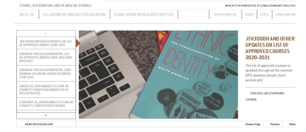 The Harney Program is responsible for the Collaborative Graduate Specialization in Ethnic and Pluralism Studies, which facilitates interdisciplinary studies for students across a range of social science disciplines and related professional fields. During his tenure as Harney Professor, Jeff expanded the number of disciplines and professional programs participating in the graduate specialization, continued the Harney Lecture Series and established an Annual Graduate Research Conference which was held for 13 years, and founded the Global Migration Research Institute as an on-line magazine featuring the work of University of Toronto faculty specializing in the field. In 2001 he brought the Program into the Munk School for Global Affairs and Public Policy, recognizing the subject of ethnic, immigration and pluralism studies as a fundamental feature of global affairs, and focusing attention on the policy challenges it presents.